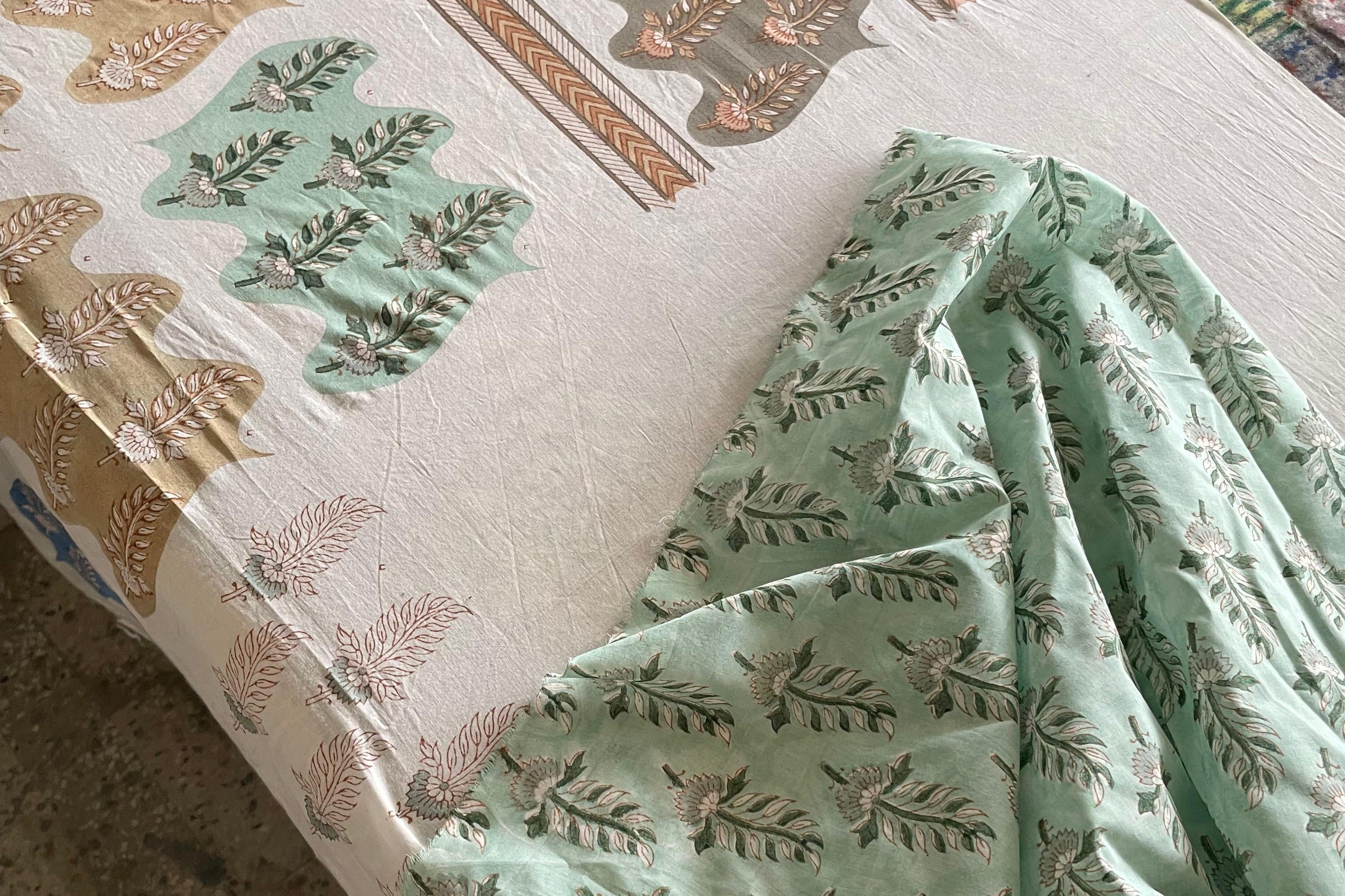 At Thar, every piece is hand block printed in Jaipur’s historic Sanganer and Bagru clusters, where artisans have perfected this craft for generations. Each design is meticulously stamped by hand, ensuring no two pieces are exactly alike.